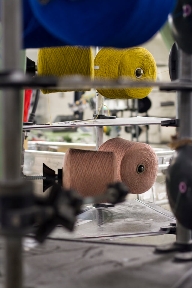 Our yarns are made with 100% recycled post-consumer textile waste from the fashion industry; 70% recycled lambswool + 30% recycled other yarns.